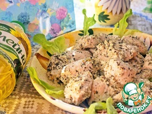 По истечении времени разогреваем духовку до 200 градусов, курицу перекладываем в жаропрочную форму (или сразу маринуем в ней) и запекаем в духовке. Грудки - 30 мин., бедрышки - 40 мин.