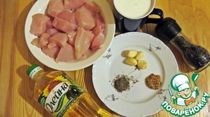 Наши основные ингредиенты. Куриное филе нужно нарезать на довольно крупные куски.