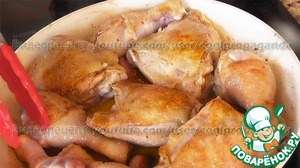 Есть во французской кухне такой кулинарный прием – жарить на смеси двух масел: оливкового и сливочного. Этот их союз дает совершенно замечательный, ни на что не похожий аромат. Справедливости ради замечу, что аналогичный прием есть и в испанской кухне, там он называется a la molinera (что-то вроде "по-молинерски"). Но учитывая, что в Испании на сливочном масле вообще жарят очень редко, предпочитая ему оливковое, думаю, что здесь мы наблюдаем случай заимствования кулинарного приема у соседа. Впрочем, пальму первенства пусть оспаривают те, кому нечем больше гордиться, мы же беззастенчиво возьмем на вооружение все, что нам понравится. Так к чему я это всё? А! Есть у нас в семье одно из любимых блюд, которое проходит под кодовым названием "Курица по-французски". Именно из-за этой самой смеси масел. Приготовьте – будете приятно удивлены!