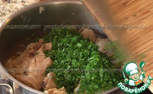 После окончания готовки выключайте огонь и добавляйте нарубленную зелень петрушки.