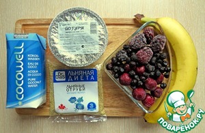 Очень полезный утренний напиток, который содержит в себе всё, что требуется для полноценного начала успешного дня (антиоксиданты, микроэлементы, минералы, клетчатку, лактобактерии) и при этом не перегружен лишними калориями. Коковелл (кокосовая вода) – прекрасный и натуральный источник микроэлементов, его упаковка 0,33 л содержит примерно 15% дневной нормы калия, что очень полезно для сердца, мозга и сосудов. Кроме того, коковелл содержит магний, кальций, йод, фосфор, селен и другие минералы и витамины. За счёт наличия серосодержащих аминокислот он также способствует детоксикации и очищению организма, выводя тяжёлые металлы и шлаки. Не берите для рецепта кокосовое молоко! Кокосовая вода и кокосовое молоко – это совсем разные вещи! Высушенные проростки пшеницы (или льняные отруби, как в нашем случае) – великолепный источник клетчатки и микроэлементов. Ягоды – натуральный источник витаминов. Банан – добавляет «полезных калорий» для нужного заряда с утра, придаёт смузи сладость, а также содержит много калия. Йогурт – содержит полезные лактобактерии и белок, запускает пищеварительную систему.