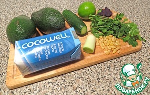 Налейте коковелл в блендер, добавьте сок лайма, поместите туда же авокадо, кинзу, лук, огурец и смешайте.