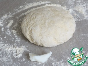Под колобок теста положить кусочек жира и перезамесить ещё раз.