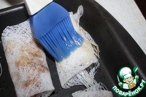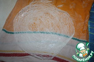 Рисовая сеточка очень хрупкая, поэтому предварительно надо ее подержать на влажном полотенце