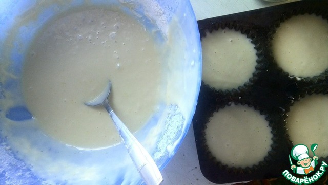 Простите что не сделала побольше подробных фотографий... совсем не успевала готовить и фотографировать (Итак Яйца, сахар и масло взбиваем до однородной массы. Затем добавляем щепотку соли, и продолжаем взбивать. Муку с разрыхлителем просеиваем. И добавляем к уже взбитой массе. Все вместе хорошо перемешиваем. Распределяем тесто по формам, заполняя каждую на 2/3. Отправляем в духовку на 25-35 минут (при 180 градусах )