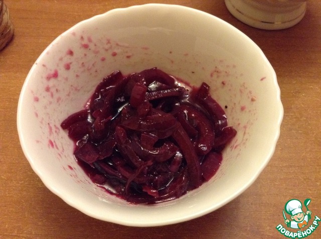 сделала только красный вариант. Брала красный лук, и свеклу добавляла, получился насыщенный цвет. Просто, быстро и вкусно! На фото остаточек Кстати, в холодильнике хранится уже 10 дней. Спасибо за рецепт!