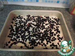 На предварительно смазанный протвень выкладываем нашу чернику (НЕ ВСЮ, а только часть) и заливаем тестом