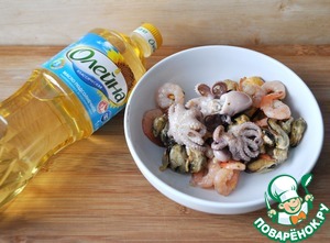 - Морепродукты (замороженные осьминоги, мидии, креветки) — 300 г