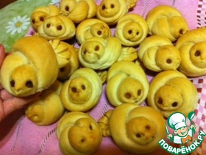 Теперь пускай "расстоятся" минут 15. Затем смазать сверху крепкой заваркой, уделяя особое внимание глазкам и в разогретой до 200 грудусов духовке выпекаем до нужной румяности (готовы они будут уже через 20 мин).