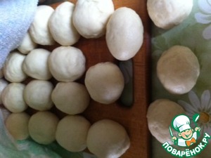 Прячем под влажное полотенце минут на 15. (Кстати, "комочки" тоже прятала под влажным полотенцем, чтобы тесто не сохло)