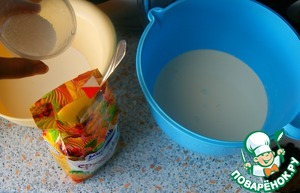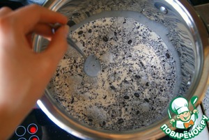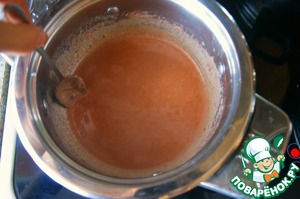 Выливаем получившиеся в кастрюльки. Массу для первого слоя доволим до кипения и сразу же снимаем с огня. Даем ей остыть. Процеживаем.