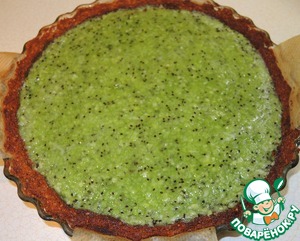 • Вылить массу из киви на остывшую основу тарта. Поставить в холодильник на 1 час для застывания.