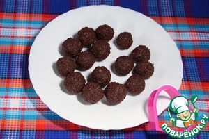 Загустевшую массу остудить. На этом этапе можно шоколад растопить (удобным для Вас способом) и смешать с массой или сделать шарики размером с грецкий орех и обвалять их в растопленном шоколаде. Я пыталась обвалять в немного загустевшем шоколаде, чтобы был эффект ёжиков. Отсюда и название.