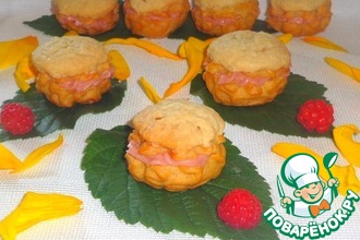 Отправляем в хорошо разогретую до 220 градусов духовку на 15 минут. Затем убавляем огонь до 190 градусов и выпекаем еще 5-7 минут! Ориентируемся на свою духовку...