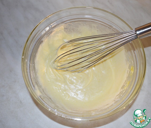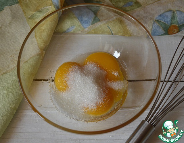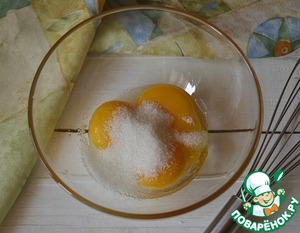 Приготовим крем Англес. Желтки перетираем с половиной сахара до бела.