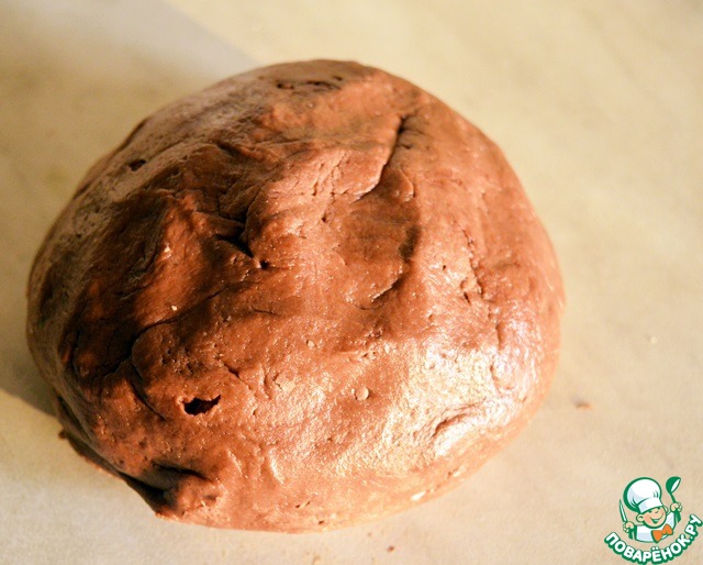 Вымешиваем гладкое и однородное тесто. Заворачиваем в пищевую пленку и отправляем на 1 час в холодильник.