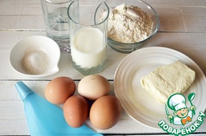 Теперь займемся приготовлением наших эклеров. Соберем необходимые ингредиенты.