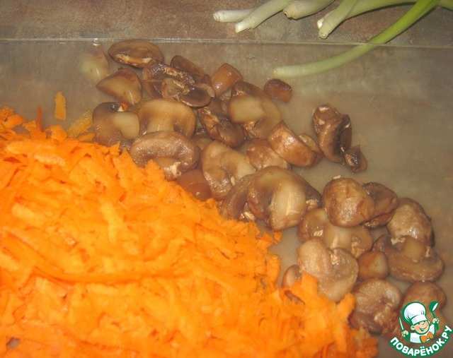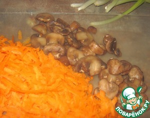 Морковь натереть, грибы нарезать