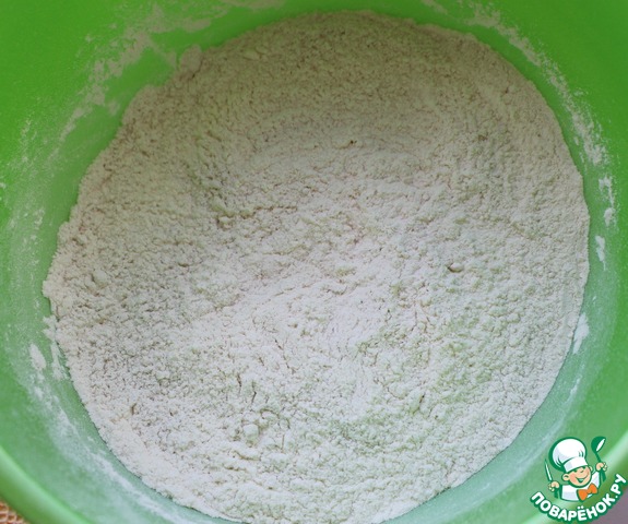 Смешать пшеничную, ржаную и овсяную муку.