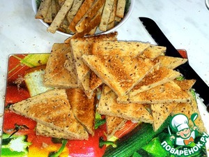 Булку ( тосты ) с семенами подсушить в тосторе.