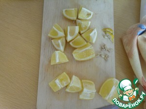Лимоны нарезать на четвертинки. Удалить косточки.