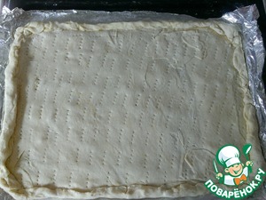 Перенесите пласт на скалке на противень.