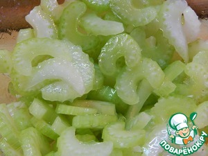 Сельдерей подготавливаем, нарезаем на пластинки.