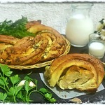 Смазываем венок желтком и посыпаем тмином. Даем постоять 10 минут. Выпекаем, в предварительно разогретой до 190 градусов духовке, в течении 30-35 минут.