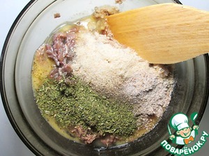 Мясо тунца соединяем с яйцами. Анчоусы промываем, высушиваем салфеткой и мелко режем, добавляем к смеси. Я заменила анчоусы на кильку, получилось не аутентично, но очень вкусно. Добавляем молотые сухари, соль, перец по вкусу и маленький мелко нарезанный пучок петрушки, если она свежая, или по вкусу сушеной. Все компоненты тщательно смешиваем деревянной лопаточкой.