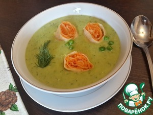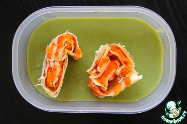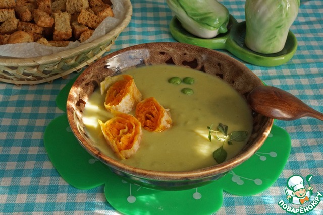Рецепт «Суп-пюре из горошка с морковными рулетами»: