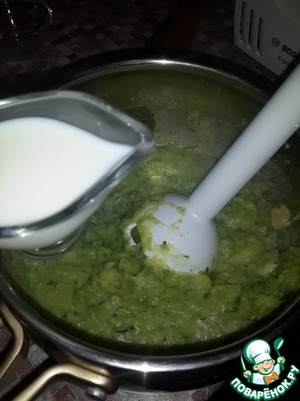Готовый суп пробиваем блендером и молоком разводим до нужной консистенции