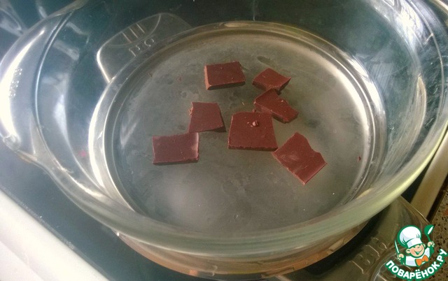 • Пока творог в холодильнике, растапливаем шоколад на водяной бане. Это послужит украшением получившимся роллам (можно украсить по-другому на свой вкус).