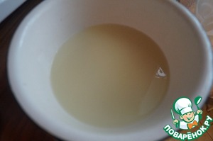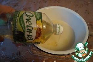 Сыворотку слегка подогреть и растворить в ней сахар, соль и дрожжи.