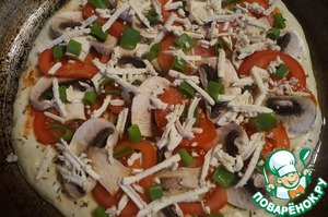 Выпекать пиццу в духовом шкафу при температуре 200 градусов в течение 15 минут, пока она не зарумянится.
