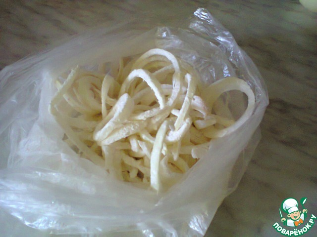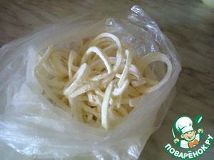 В пакете смешать муку, паприку и соль, положить в него кольца лука и хорошо встряхнуть