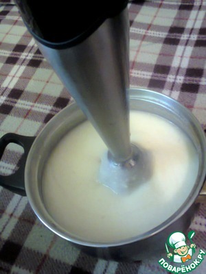 Пюрировать картофель и капусту, добавлять картофельный отвар, чтобы получить консистенцию сметаны