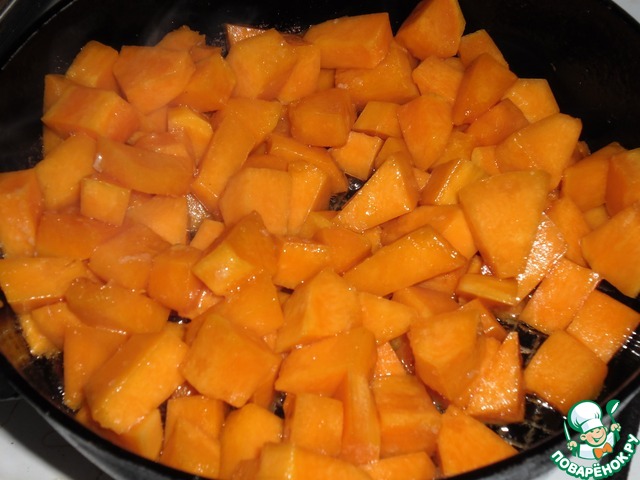 Тыкву помыть, очистить и нарезать небольшими кубиками.