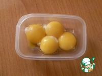 Подготовим все продукты. Отделяем белки от желтков. Белки нам не понадобятся. Их либо замораживаем, либо оставляем в холодильнике для диетического омлета на завтрак.