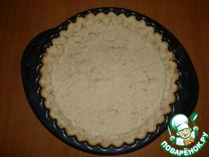 Нарезаем тесто на нетолстые кусочки. Этими кусочками выкладываем форму, затем слегка придавливаем, чтобы получился сплошной пласт теста.