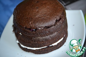Когда все готово, приступаем к сборке нашего весеннего тортика. Один корж мажем молотой голубикой (летом я ее свежую перемалываю и храню в холодильнике), второй-снизу мажем кремом и кладем на голубичный, и так каждый корж.