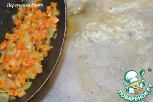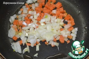 Лук с морковкой нарезать кубиками и обжарить на растительном масле.