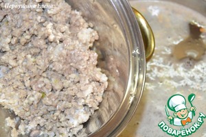 Когда фасоль сварится наполовину, влить сливки и добавить фарш, предварительно размятый вилкой. Довести до кипения и варить дальше до готовности бобовых.
