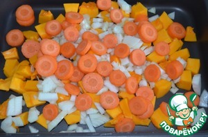 Положить подготовленные овощи в большую, огнеупорную форму.