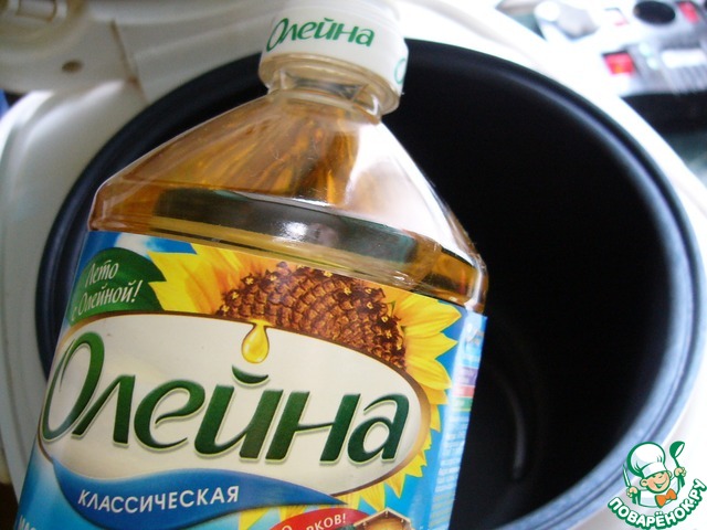Налить в чашу подсолнечное масло ТМ"Олейна" и включить режим "Жарка"- 6 минут.