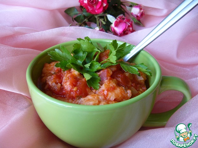 - Томаты в собственном соку (1 банка,вместе с жидкостью) — 750 г