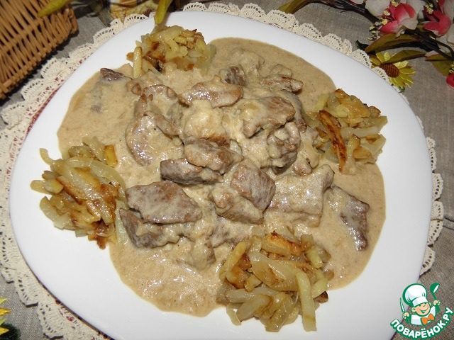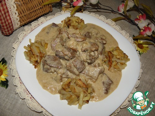 В продолжение о мясе..! Вкус его всегда прекрасен! И фантазии различны! А рецепты безграничны..! Хочу, друзья, я предложить, нам вкусно мясо потушить..! Нежный соус приготовим! И итоги подведем..! От тарелок не отходим, а еще добавки ждем..! Получилось ароматно! Это блюдо всем приятно! Очень сливочно и сочно! Все довольны будут - точно!