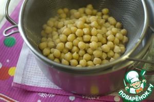 Готовый нут необходимо откинуть на дуршлаг и слить всю жидкость. -