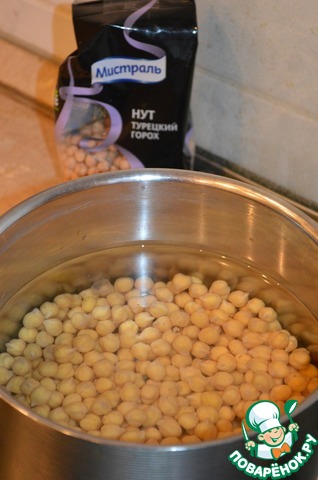 Один стакан сухого нута замочить в воде не менее чем на четыре часа, лучше на ночь. Воду слить, залить новой водой из расчета 1:5 и варить 10 минут на сильном огне, а потом 50-60 минут, убавив огонь.