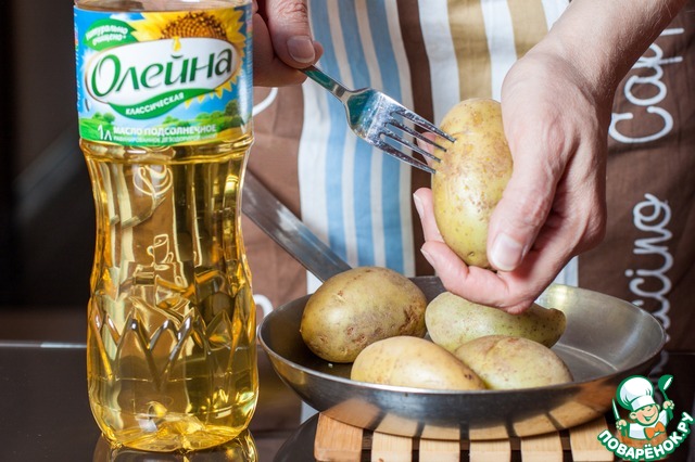 Крупные клубни картофеля хорошо помыть и наколоть вилкой в нескольких местах, чтобы шкурка во время запекания не лопнула