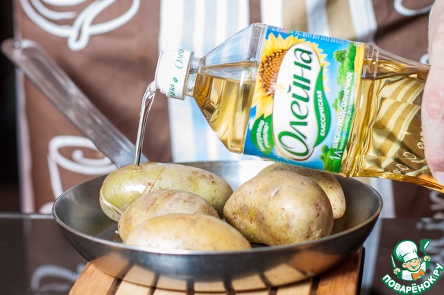 Положить картофель в форму для запекания*, влить масло Олейна и тщательно смазать каждый клубень растительным маслом. Запекать в духовке 20 минут при Т 200-220С, до полной готовности.